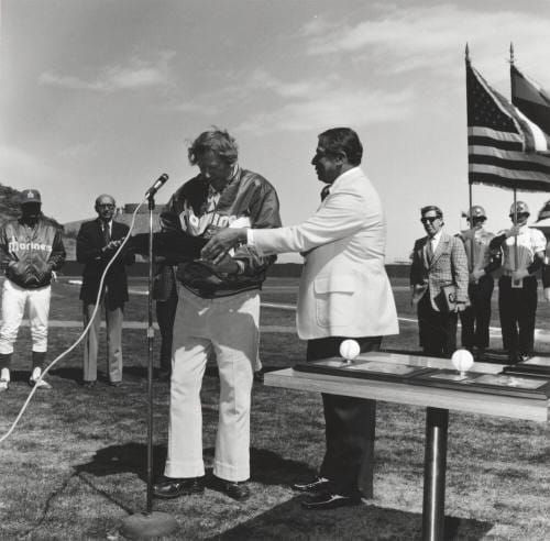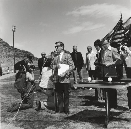 LoPiano served as mayor of Tempe from 1974 until 1978. He was invested in expanding Tempe’s downtown business district and made the smart sartorial choice of plaid suits in many of his official portraits and appearances. LoPiano was also not a fan of Smith. As the proprietor of facility, Smith had originally sent tickets to the mayor. LoPiano wrote “void” across the tickets and returned them unceremoniously.